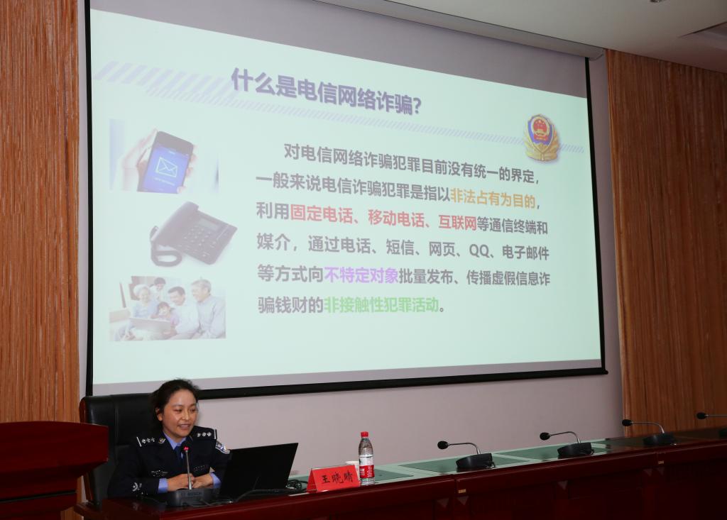 培训会上,龙泉派出所焦德灵所长通报了我校近3年来电信诈骗案件的基本情况,介绍了与我校联合开展反诈防诈的工作情况,并提出下步防范电信诈骗的措施建议。龙泉派出所民警王晓晴结合自身的工作经验和我校发生的典型诈骗案例,形象生动讲解了网上刷单、“杀猪盘”、网购诈骗、网络贷款等常见的电信网络诈骗类型,分析了不法分子常用的诈骗手法和作案特点,介绍了防范诈骗的常识和诈骗预警“金钟罩APP”、“国家反诈中心APP”的功能。