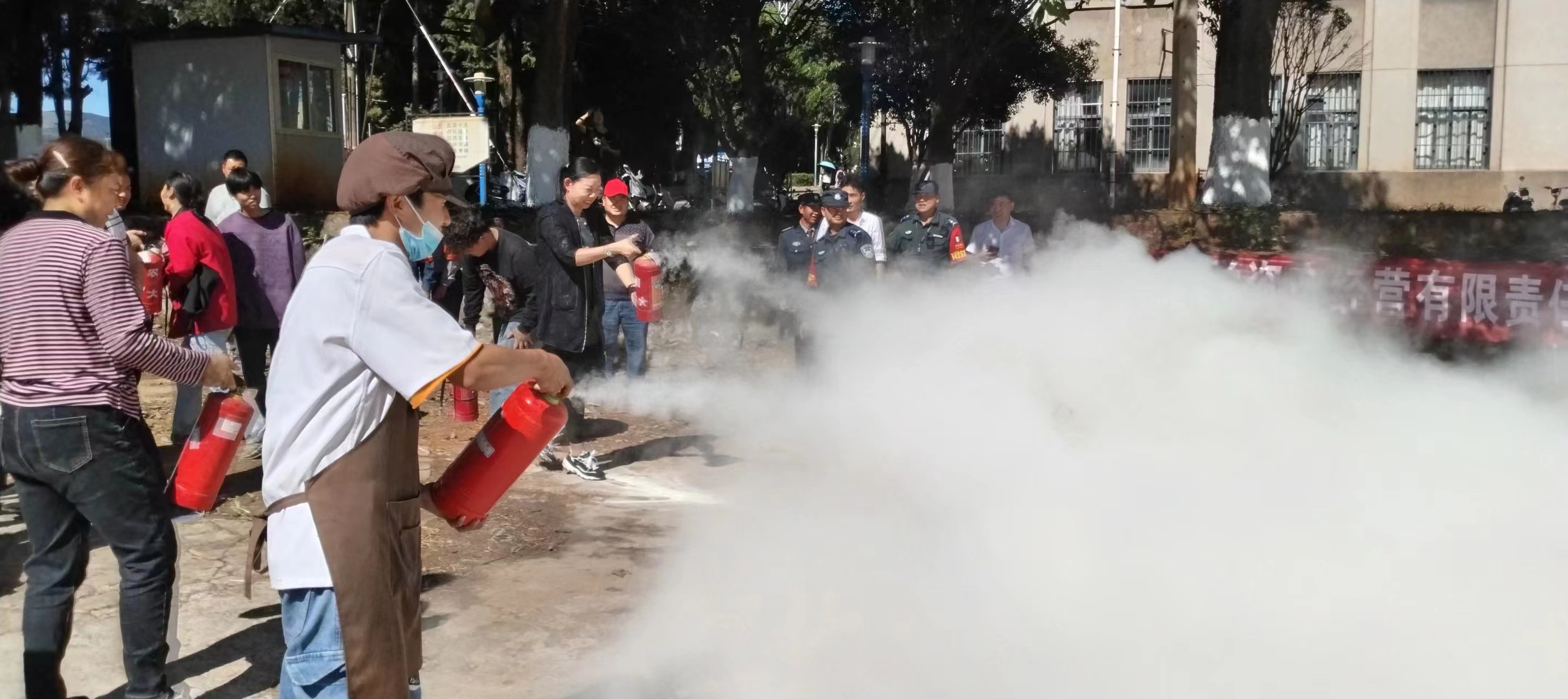 保卫处邀请了云南四联检测有限公司的技术人员进行培训,技术人员结合各商铺的工作性质,列举近年来典型火灾案例,讲解了掌握灭火技能的重要性,灭火器的种类以及使用方法及需要注意的事项,并演示了使用干粉灭火器、消防水带的连接方法、扑灭初起火灾的操作方法和技巧。在灭火器操作演练中,大家积极参与,体验正确使用灭火器的方法。